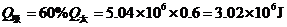 解:Q1=2.52×106 J×2×3=1.512×107J