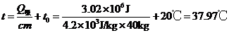 ⊿t=Q2/cm=7.56×106J/[4.2×103 J/(kg·℃)×100kg]=18℃