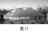 (菏泽)23(2分).“低碳---环保”是上海世博的主题理念,日本馆非常巧妙的体现了这个理念。如图15所示,这个名为“紫蚕岛”的别致建筑,它透光性高的双层外膜里面却藏有玄机,不需要消耗任何燃料就可以自主发电,供给展馆内使用。同时,在它的屋顶还有几个凹槽和突起的触角,它们会收集阳光和雨水,在炎炎夏日的时候它们会喷出薄雾,以此来降低气温,效果如同使用空调一样。