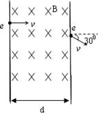 15.(12分)如图所示,一束电子(电荷量为e)以速度v垂直边界射入磁感应强度为B,宽为d的匀强磁场中,穿过磁场时速度方向与电子原来入射方向的夹角为300,求: