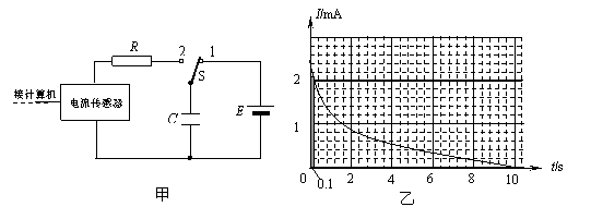 22.(9分)电流传感器可以象电流表一样测量电流,它的优点是反应非常快,可以捕捉到瞬间的电流变化,还可以与计算机相连,能在很短的时间内画出电流随时间的变化图象。按图甲连接电路,提供8V直流电源,先使开关S与1相连,电源向电容器充电,这个过程可在瞬间完成,然后把开关S掷向2,电容器通过电阻R放电,传感器将电流信息传入计算机,屏上显示出电流随时间变化的I--t曲线,如图乙。