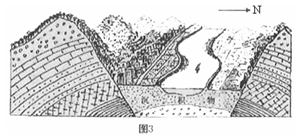 图3为我国某地地形和构造剖面图。读图3,回答第6题。