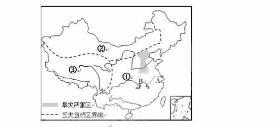 (1)图中①②③代表我国的三大自然区,请写出它们所代表的自然区的名称。