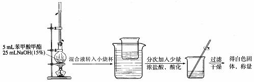 (2)C中除了15g苯甲酸和20mL过量甲醇外还需要 、 。