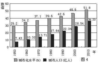 A.①国出现逆城市化现象 B.①国农村剩余劳动力比三国少