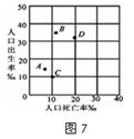 (1)读出图中有关点的人口出生率和人口死亡率: