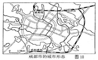 29.图10为成都市的城市形态示意图,读图后回答:(8分)