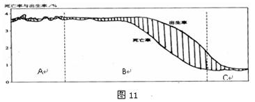 30.读“人口增长模式及其转变示意图”(图11),回答下列问题。(11分)