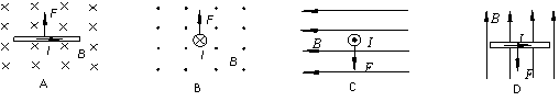 6. 在下图中,标出了磁场B的方向、通电直导线中电流I的方向,以及通电直导线所受磁场力F的方向,其中正确的是 ( )