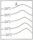 36.读右面的“海水等温线图”,图中所示洋流是