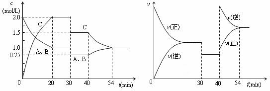 2C(g)。达到平衡后,只改变反应的一个条件,测得容器中各物质的浓度、反应速率随时间变化如下两图所示。