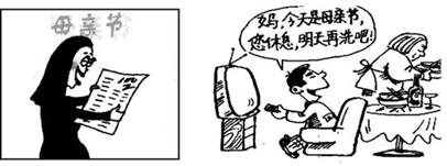 济宁 5.母亲是我们人生中的第一位老师,她辛辛苦苦地抚养我们长大,默默地奉献着无私的爱,温暖着我们的心,教我们如何做人,学会生活。每年5月的第2个星期天是母亲节。作为子女,我们应该为母亲准备些什么?对下面两幅漫画分析正确的有C