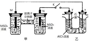 9.某同学按右图所示的装置进行实验。 M、N为两种常见金属,它们的硫酸盐可溶于水。当 K 闭合时,在交换膜处 SO42一从右向左移动。下列分析正确的是 ( )