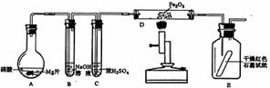 [例3]某同学为研究硝酸与镁的反应,进行图示实验,实验现象及相关数据如下:(a)A中为一定浓度的硝酸与Mg片发生反应,生成的气体通过B后,在B中只生成一种盐,剩余气体遇空气不变色,其体积为原体积的一半。(b)从C进入D中的气体有两种,且体积比为1∶1。(c)将D加热一段时间后,E中干燥的红色石蕊试纸逐渐变蓝。(设实验前,装置中的空气已排尽;气体的体积均在同温同压下测定)