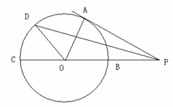 如图,PA切圆O于点A,割线PBC经过圆心O,OB=PB=1,OA绕点O逆时针旋转