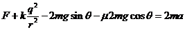 当r增大,F增大,库仑力减少,外力要不断增大以维持加速度不变。当N=0时,Fmax最大。后外力F变为恒力,设外力的刚好为Fmax时, B、C之间的距离为L2 。