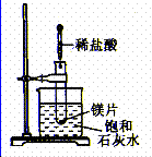 22、(6分)如图所示,把试管放入盛25℃的饱和澄清石灰水的烧杯中,试管中开始放入几小块镁片,再用滴管滴5mL稀盐酸于试管中,试回答下列问题: