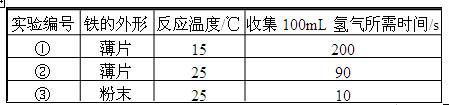 (1)该实验的目的是探究固体表面积和________对铁和稀盐酸反应速率的影响。