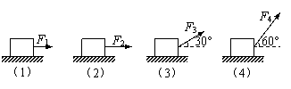 如图所示,物体质量都是m,加速度都是a,位移都是s,第一种情况水平面光滑,后三种情况摩擦因数相同,物体对水平面都有压力,那么( )