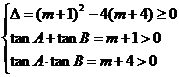 (1)若tanA,tanB是方程f(x)+4=0的两个实根,A、B是锐角三角形ABC的两个内角.求证:m≥5;