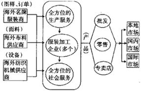 (1)根据“某服装生产专业镇工业联系示意图”,简述该镇服装产业的特点。