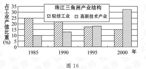 (3)据下图所示,近二十年来珠江三角洲地区的产业结构有哪些变化?(3分)