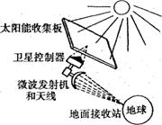 24.(18分)为了解决日益紧迫的能源问题,有些科学家正在研究太空电站的问题,所谓太空电站,就是地球同步轨道上的太阳能电站,其示意图如图所示,在太阳能收集板上铺设太阳能硅电池,把光能转化为电能;再经过微波转换器把直流电转换成微波并通过天线将电能以微波形式向地面固定接收站发送;地面的接收站再把微波转换成电能。