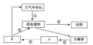 下图是生态系统中氮循环的简明示意图,请根据图回答下列问题: