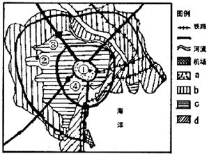 34.图中①②③④四个地区分别是不同级别的中心地。其中,级别最高的是