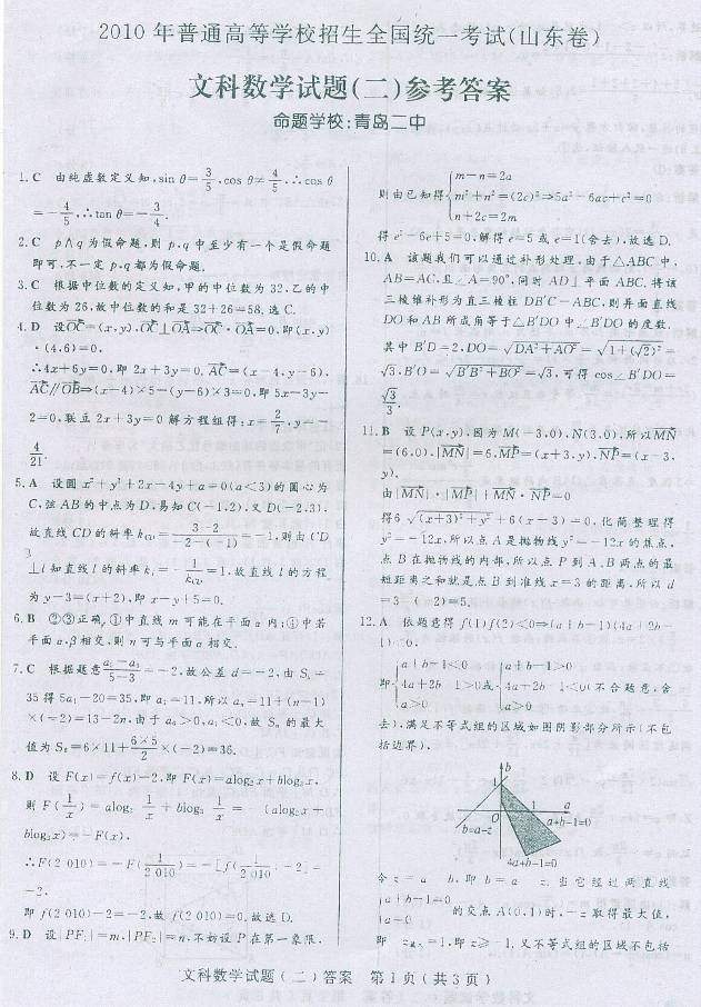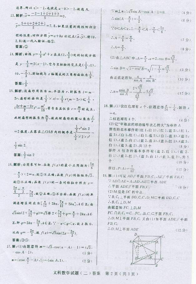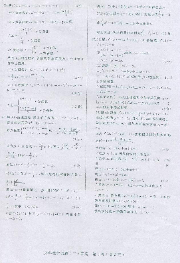 文科数学试题(二)第4页(共4页)