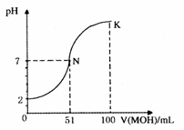 (4)K点对应的溶液中,c(M+)+c(MOH)_____________2c(A-)(填“>”、“<”或“=”);若此时溶液中pH=10,则c(MOH)+c(OH-)=____________mol·L-1。