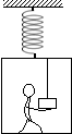 如图所示,整个系统处于静止状态,当容器内原来直立的人用手向上托悬挂着的重物而重物没有运动时,悬挂容器的弹簧将: