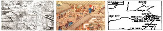 图一 棉花收购图 图二清朝北京前门商业繁荣 图三 明代工商业城市分布