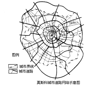 6.据右图判断,莫斯科城市道路网络布局形式的主要形成因素是