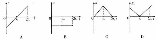 2、下图能正确反映竖直上抛运动速度、加速度、位移和动能随时间变化关系的是( )