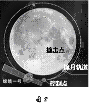 为纪念伽利略将望远镜用于天文观测400周年,2009年被定为以“探索我的宇宙”为主题的国际天文年。我国发射的“嫦娥一号”卫星绕月球经过一年多的运行,完成了既定任务,于2009年3月1日16时13分成功撞月。如图2为“嫦娥一号”卫星撞月的模拟图,卫星在控制点开始进入撞月轨道。假设卫星绕月球作圆周运动的轨道半径为R,周期为T,引力常量为G。根据题中信息,以下说法正确的是( )