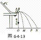 用半径相同的两小球A、B的碰撞验证动量守恒定律,实验装置示意如图6-4-13,斜槽与水平槽圆滑连接.实验时先不放B球,使A球从斜槽上某一固定点 C由静止滚下,落到位于水平地面的记录纸上留下痕迹.再把B求静置于水平槽前端边缘处,让 A球仍从