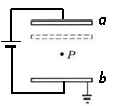 如图所示,两块水平放置的平行正对的金属板a、b与电池相连,在距离两板等远的P点有一个带电液滴处于静止状态。若将a板向下平移一小段距离,但仍在P点上方,则稳定后,下列说法中正确的是( )