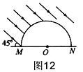 (8分)半径为R的半圆柱形玻璃,横截面如图12所示,O为圆心,已知玻璃的折射率为