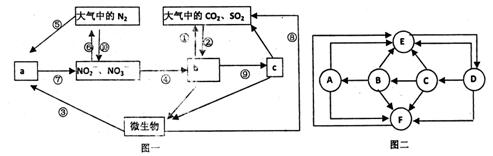 30.(5分)下图图一是生态系统中氮循环、碳循环、硫循环及其相互关系的简图,图二为某草原生态系统的结构简图,“→”表示碳的流动方向。请仔细分析后回答下列问题: