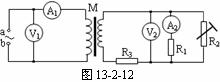5.如图13-2-12所示,M是一小型理想变压器,接线柱a、b接在电压u=311sin314t(V)的正弦交流电源上,变压器右侧部分为一火警报警系统原理图,其中R2为用半导体热敏材料制成的传感器,电流表A2为值班室的显示器,显示通过R1的电流,电压表V2显示加在报警器上的电压(报警器未画出),R3为一定值电阻.当传感器R2所在处出现火警时,以下说法中正确的是( )