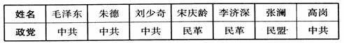 14.下列是中华人民共和国第一届中央人民政府主席、副主席的党籍统计表,此材料说明了