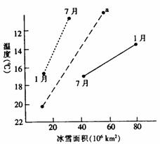 右图中的三条线表示了全球及南北半球月平均气温变化与冰雪覆盖面积的对应值,读图回答5~6题。