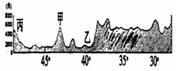 右下图是沿东经87.5°经线的我国地形剖面图,读图完成1-2题。
