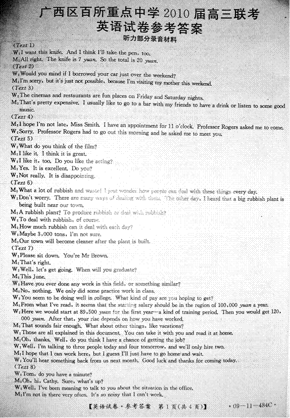 第一节 短文改错(共10小题;每小题1分,满分10分)
