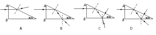 如图所示,一束光从空气垂直射到直角棱镜的AB面上,已知棱镜材料的折射率为1.4,则这束光进入棱镜后的光路图应为下面四个图中的(