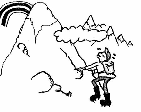 As we can see in the picture, a boy is climbing a high mountain, sweating all over and having a tired look. In spite of many large rocks blocking his way, the exhausted boy is still struggling on the steep mountainside, because he knows that there is a rainbow behind the mountain.
