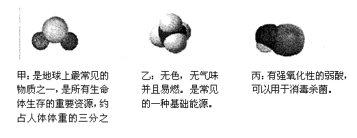 信息② 四种元素之间形成的某三种分子的比例模型及部分性质: