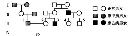②如果IV6是男孩,则该男孩同时患甲病和乙病的概率为 。