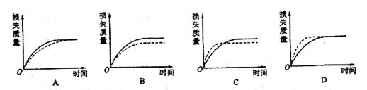 4.将mg块状碳酸钙跟足量盐酸反应,反应物损失的质量随时间的变化曲线如下图的实线所示,在相同的条件下,将mg粉末状碳酸钙与同浓度足量盐酸反应,则相应的曲线(图中虚线所示)正确的是